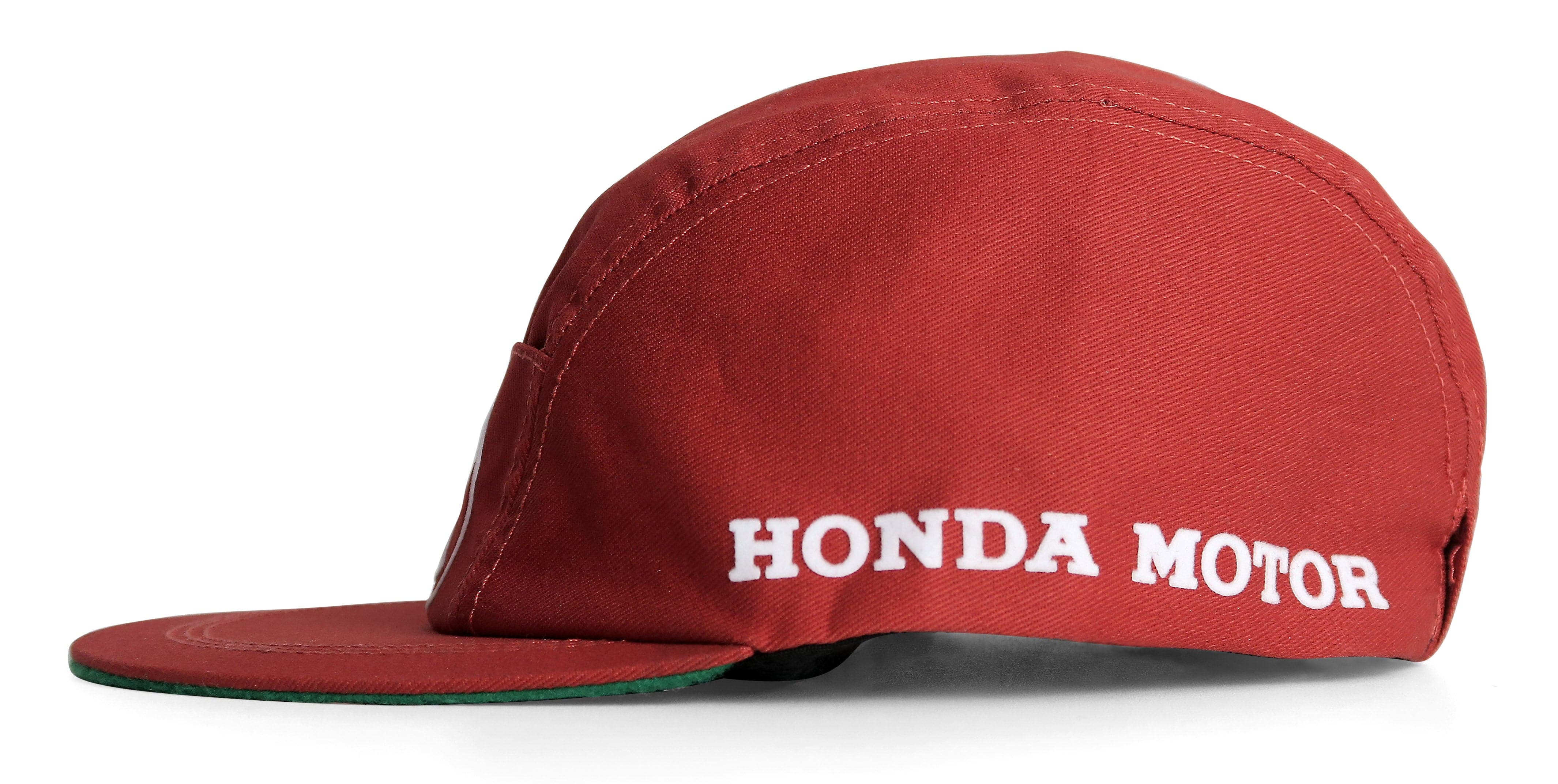 We were able to source an original 1960s Honda grand prix mechanic's hat to create this accurate replica of the very hat worn by mechanics when Honda made their grand prix debut in August 1964 at the NĂŒrburgring. Dark red cotton/poly mix is period correct with flocked artwork and mild contrast stitching. The unique, period correct, flex-style closure was accurately replicated as well. The interior materials and construction are also spot-on save for the more practical sweat band. Get your piece of Honda history while you can. Limited availability.Â
